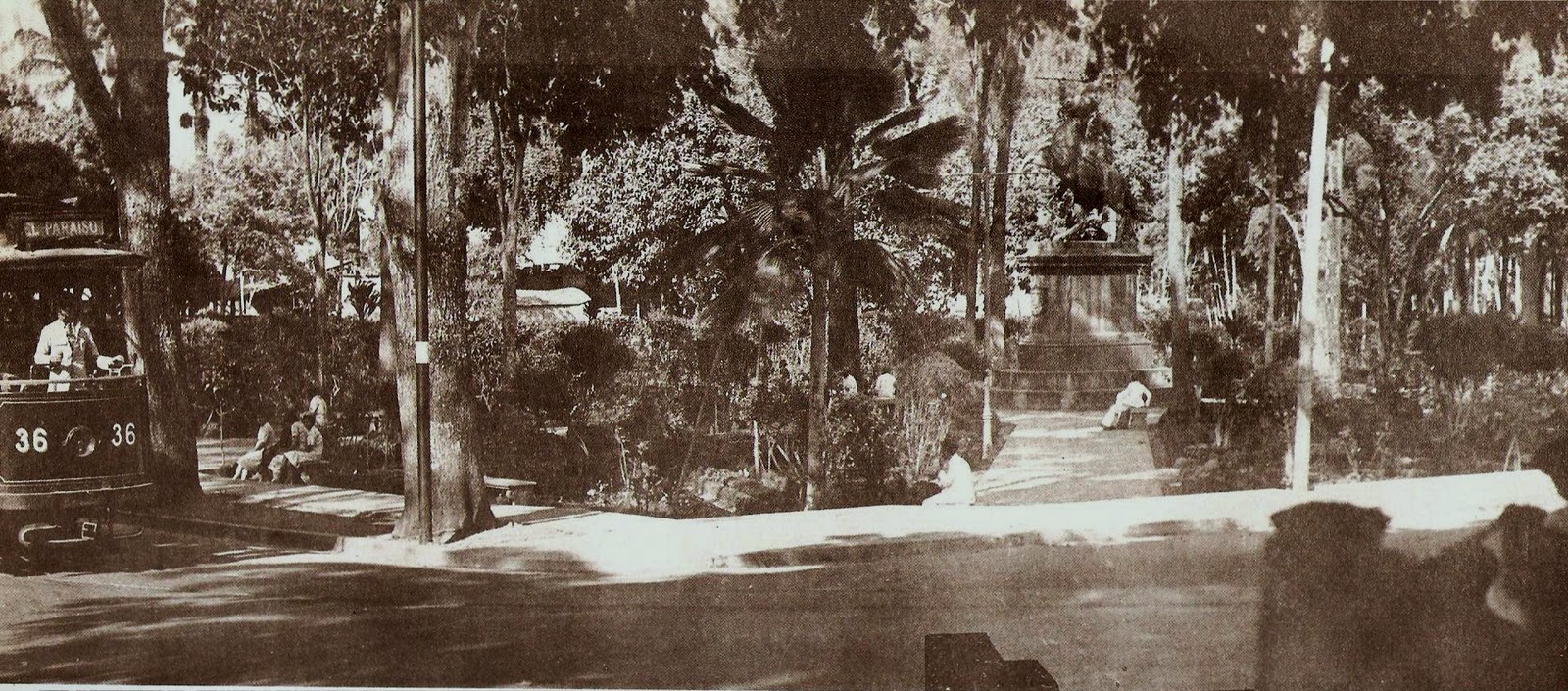 Hacia 1910, según se aprecia en una imagen tomada por el fotógrafo alemán Oswald Lubeck y actualmente perteneciente a la Colección de la «Biblioteca de Fotos de Alemanía», la plaza tenía un alto reloj y jardineras, además de las bancas del parque. El reloj ya no se observa en estampas de 1940, pero sí el alumbrado público y profusión de árboles.