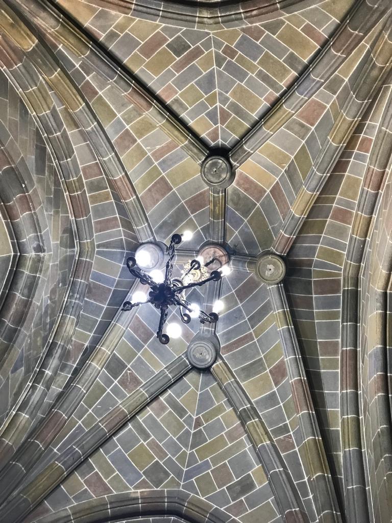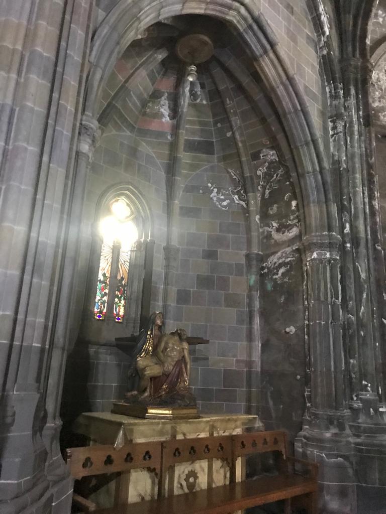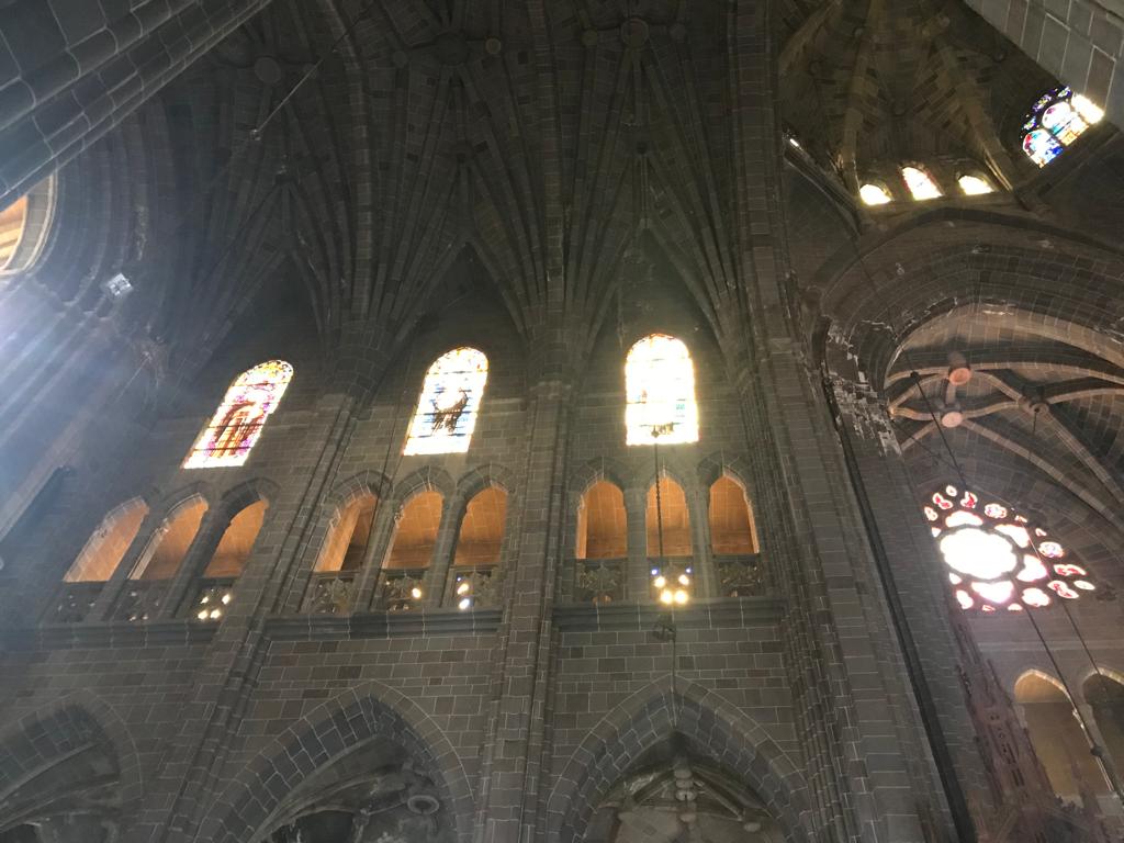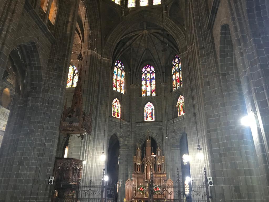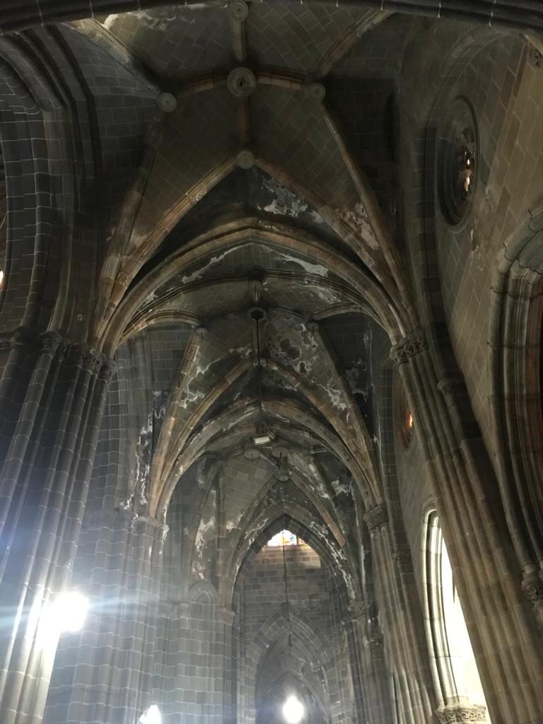 El templo presenta planta de cruz latina con tres naves, ábside, capillas laterales y deambulatorio. La nave central posee mayor altura que las laterales, separadas por un sistema de arquerías, sobre las que se eleva la galería del triforio y sobre este se aprecia el claristorio.